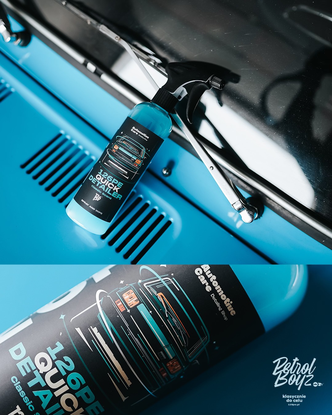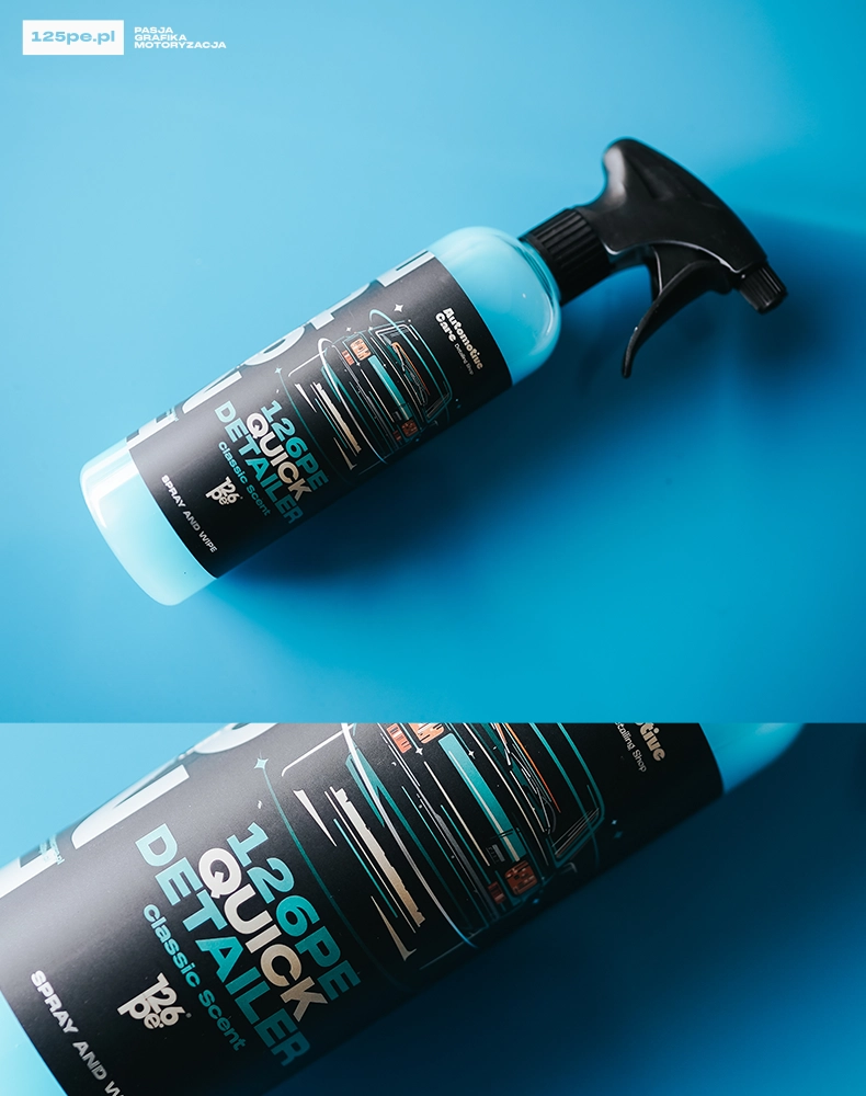 Gotowy do użycia quick detailer, stworzony z myślą o szybkiej pielęgnacji lakieru po myciu. Usuwa kurz, odciski palców i drobne zabrudzenia, jednocześnie wydobywając głębię koloru i nadając piękny połysk. Tworzy hydrofobową warstwę ochronną, która ułatwia spływanie wody i zabezpiecza powierzchnię.Bezpieczny dla wszystkich typów lakieru – także tych klasycznych. Maluch znów produkowany w Bielsku-Białej – tym razem w płynie! Ten detailer nie tylko dobrze wygląda i świetnie pachnie, on po prostu skutecznie działa. Jesteśmy dumni z kolejnej, mocnej kooperacji, realizowanej wspólnie z marką 125pe – pasja × grafika × motoryzacja, tworzącą autorskie projekty inspirowane klasyczną motoryzacją.