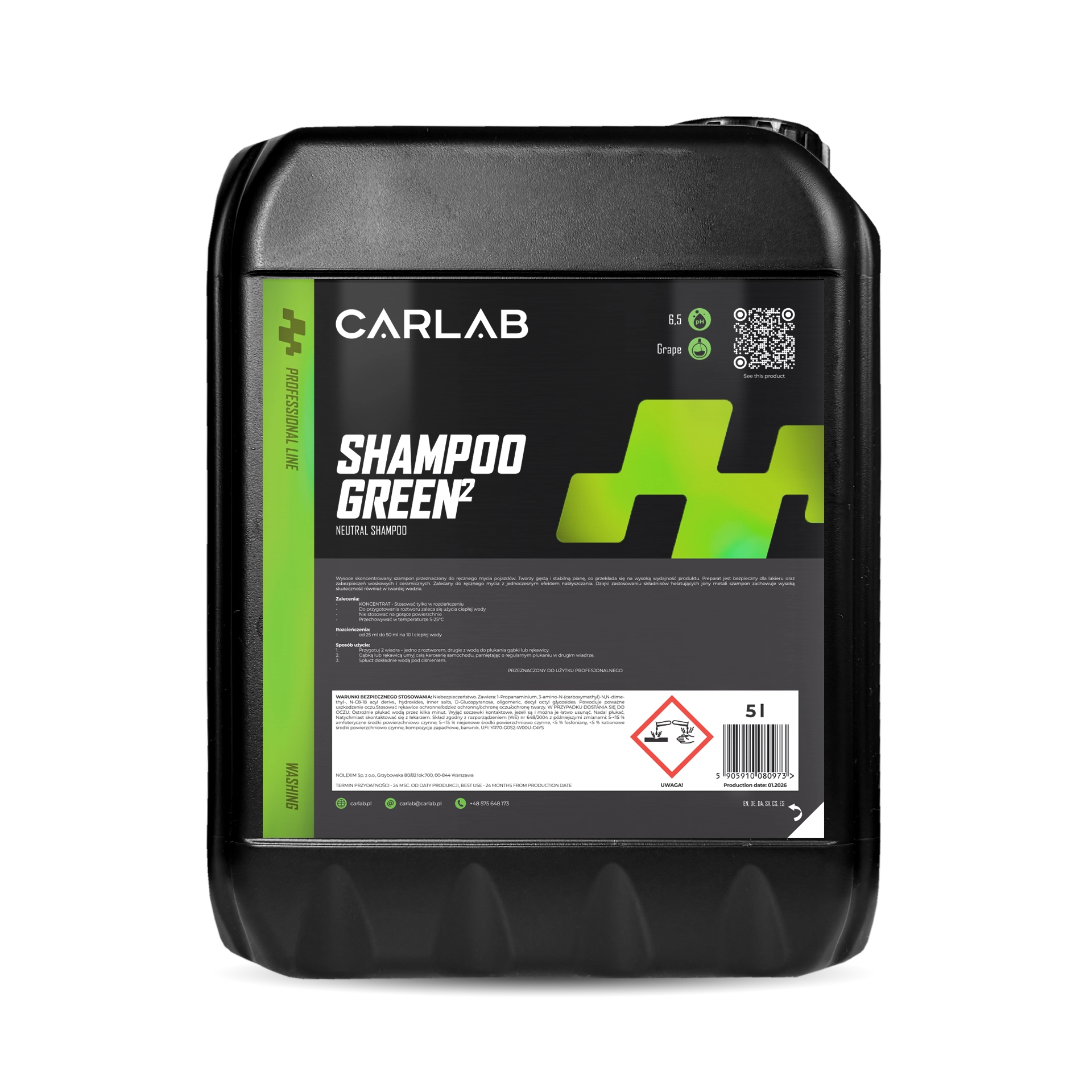 CARLAB SHAMPOO GREEN2 - wysoce skoncentrowany szampon przeznaczony do ręcznego mycia pojazdów 5L